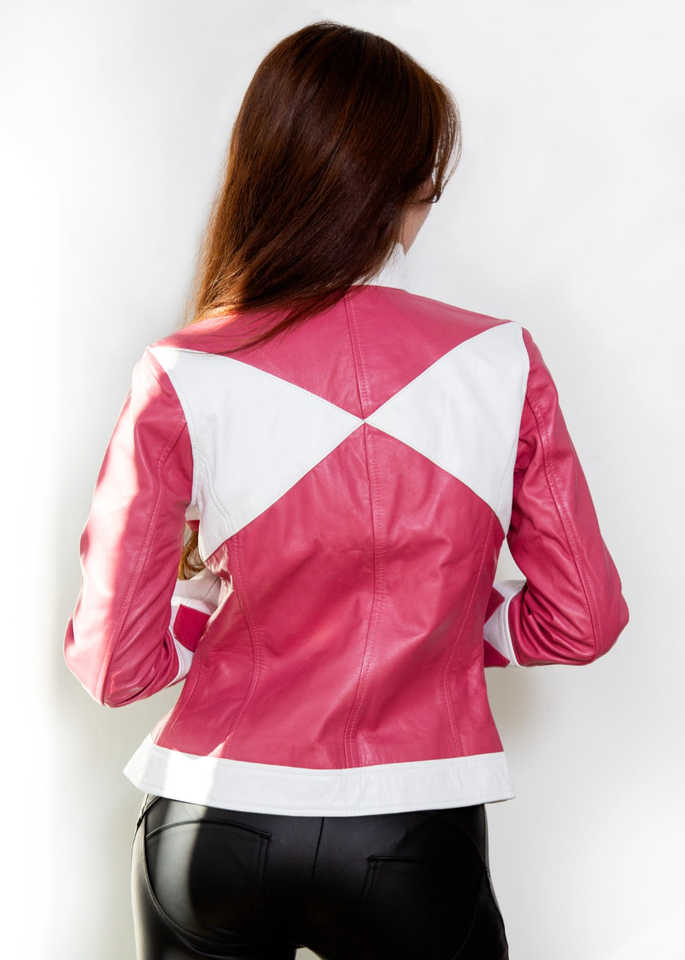Women's Pink 100% Genuine Sheepskin Jacket Online Store's Real Cropped Bomber Style Embroidery Decoration Breathable Feature