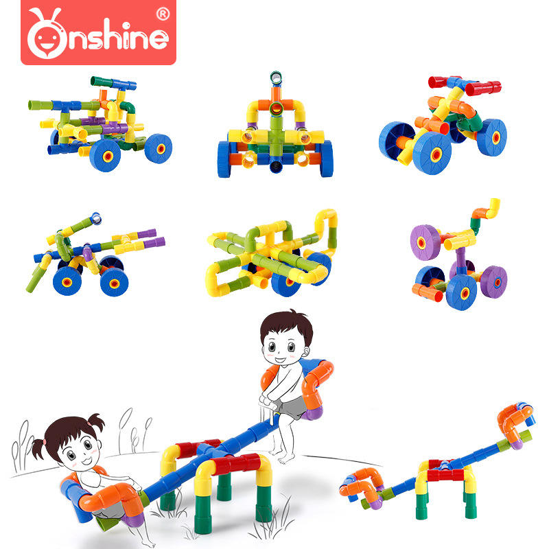 Onshine Children's Plastic Building Blocks 200-400 Pieces DIY Interlocking Pipe Toy For 4-6 Years Old Kids