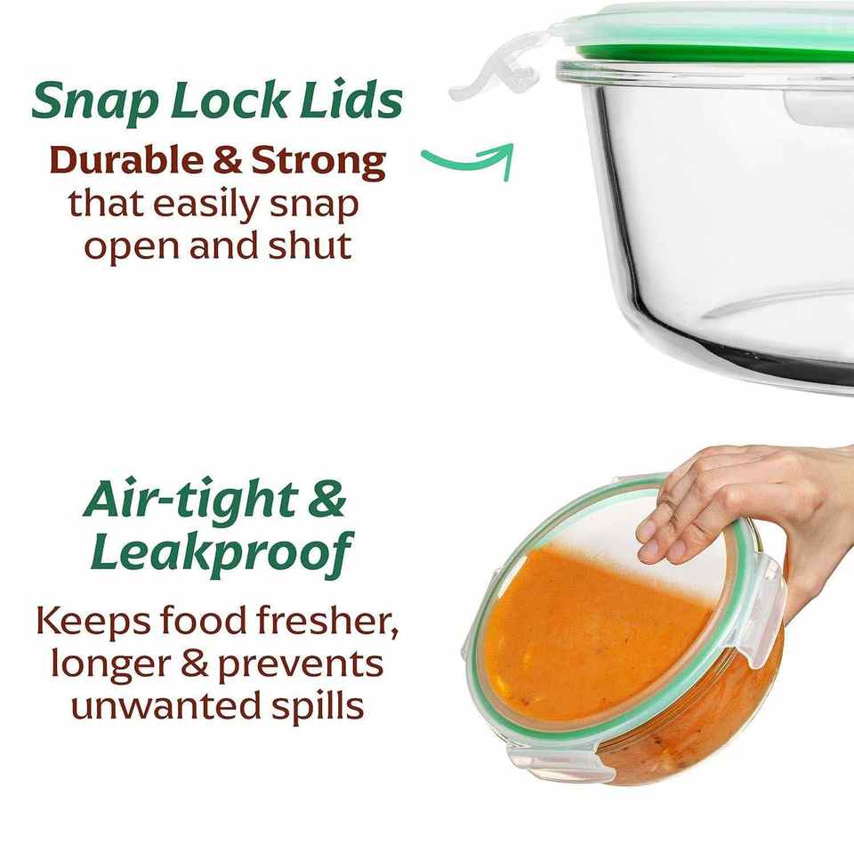 Onsine High Borosilicate Glass Crisper Lunch Box Freezer Oven Dishwasher Microwave Safe Airtight Leak Food Storage Containers