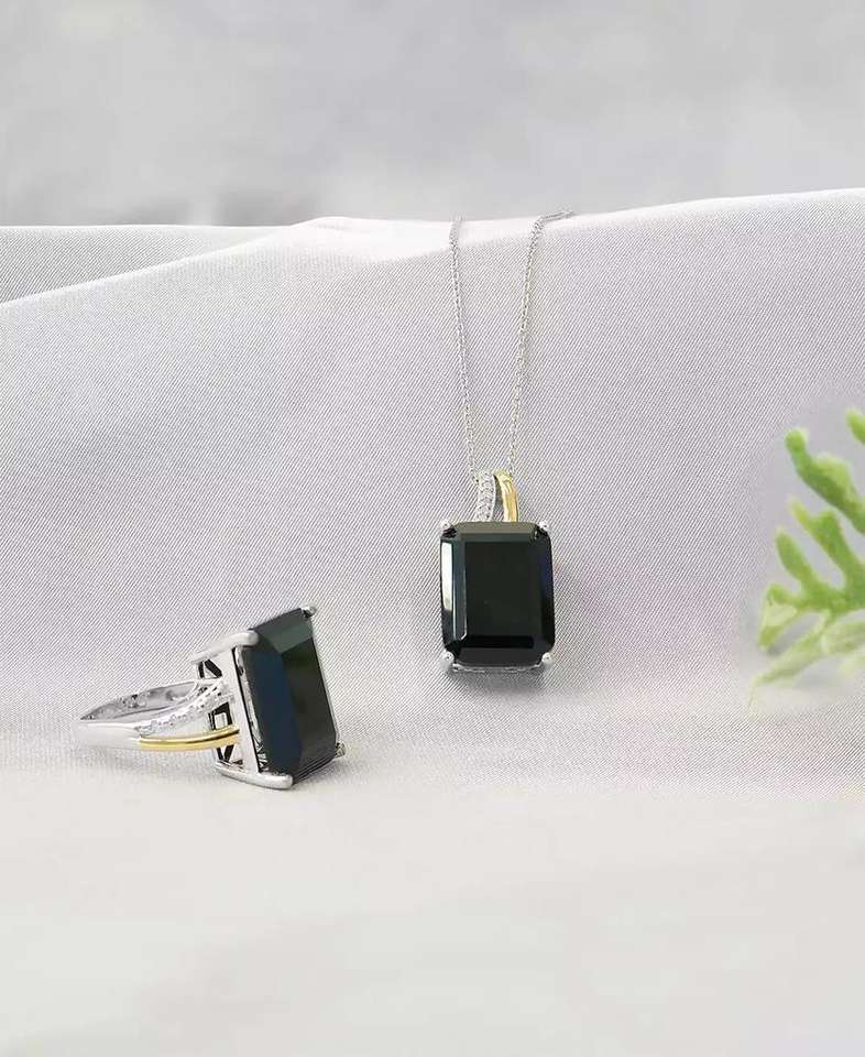 Onyx (10 ct. t.w.) and Diamond Accent Pendant Necklace in Sterling Silver and 14k Gold | Macy's