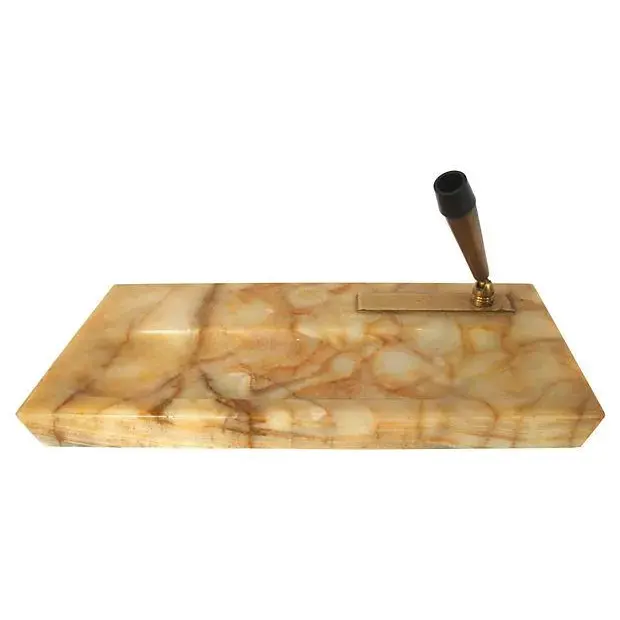 Onyx Desk Accessories, Art Deco Desk Set in Marble Onyx Stone, Onyx Pen Set