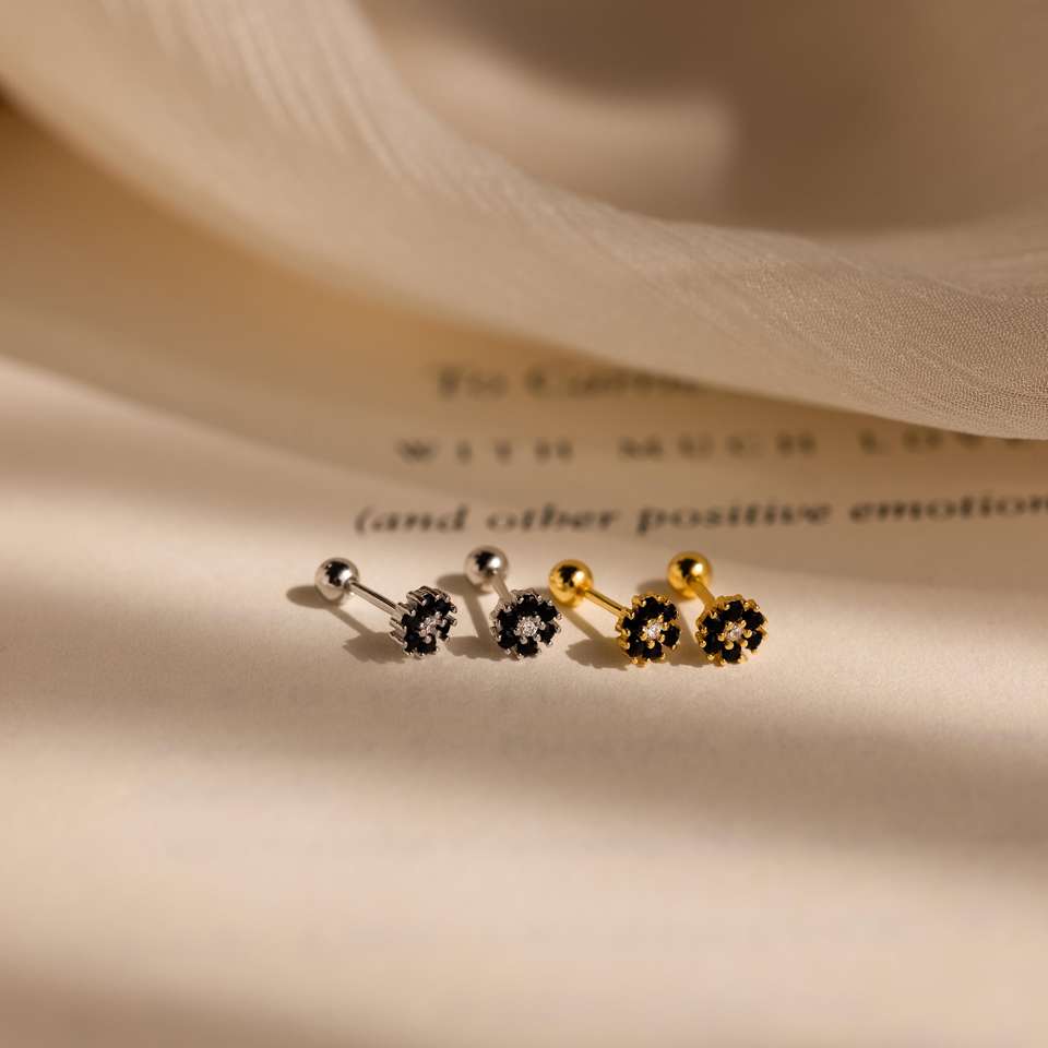Onyx Flower Stud Earrings 925 Silver Gold Plated Delicate Black Gemstone Floral Earrings in Gold Art Deco Jewelry Gift for Her