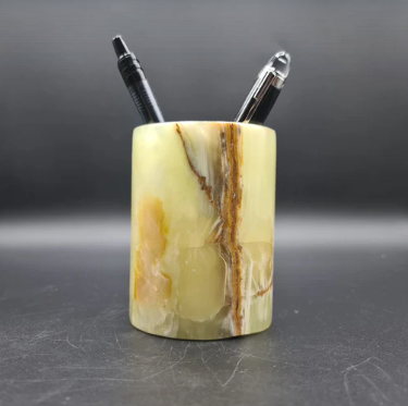 Onyx Pen Holder Cylinder Handcrafted Natural Stone Office Desk Organizer Luxury Marble Stationery Stand