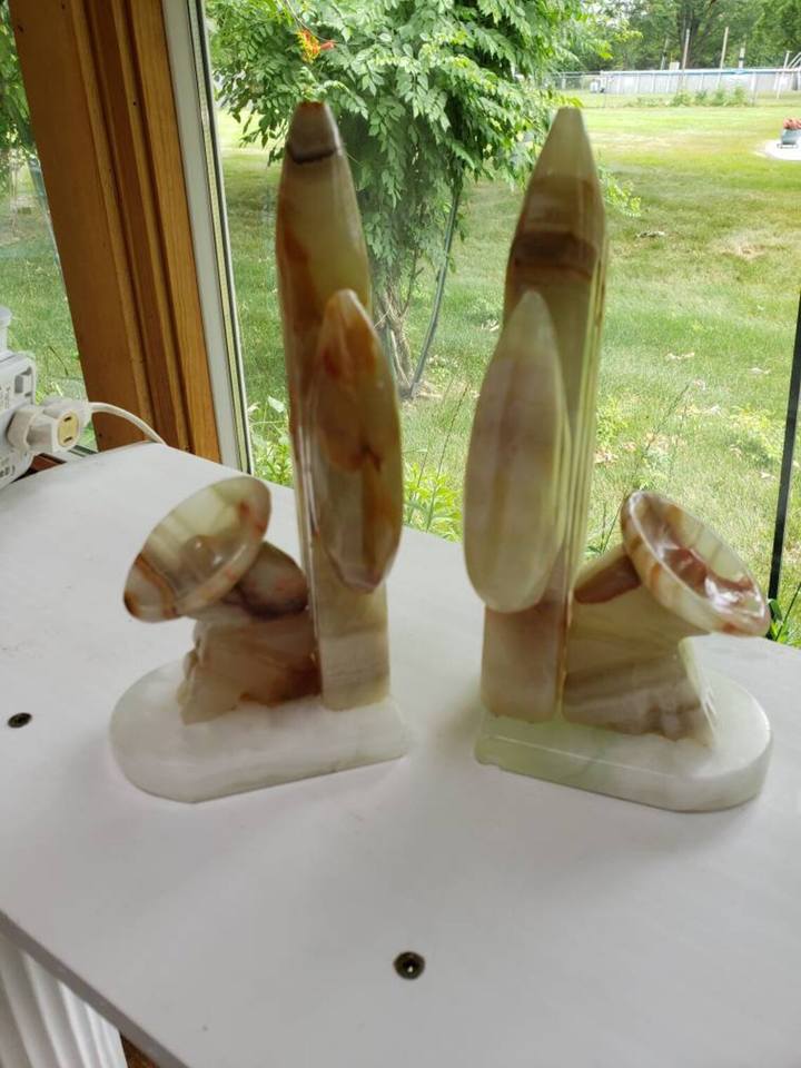 Onyx Siesta Book Ends Southwestern Cactus, Green Onyx Cactus Carving, Onyx Christmas Grapes Cactus Tree