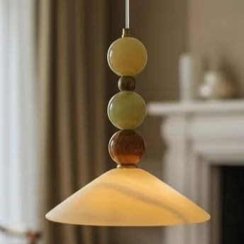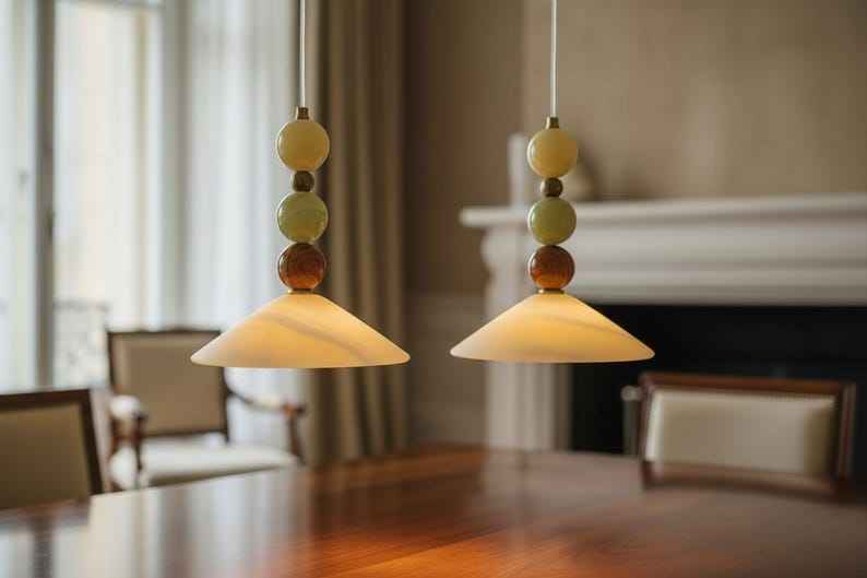 Onyx and Marble Chapou Pendant Light Handmade Stone Glass Hanging Lamp for Kitchen Island and Modern Dining Spaces