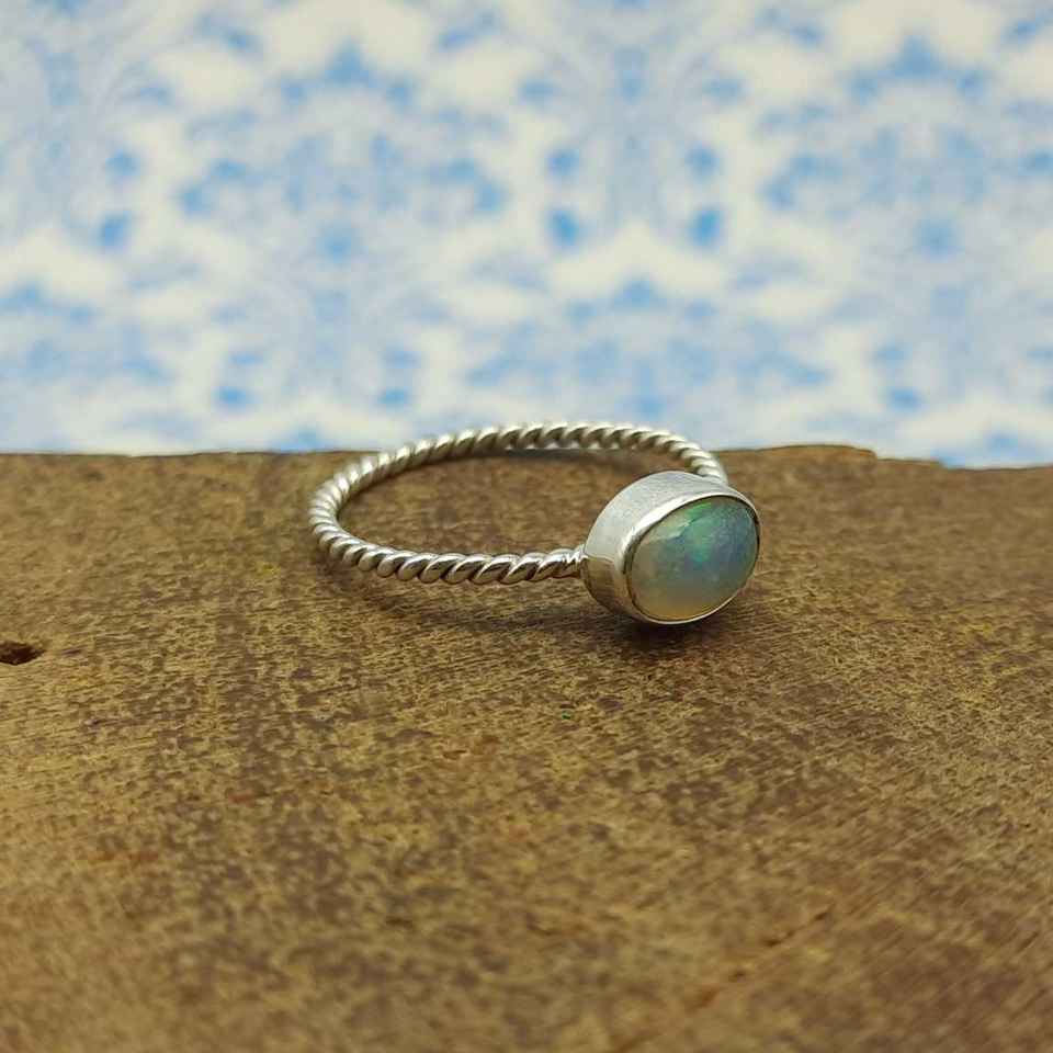 Opal Cabochon Gemstone Birthstone Ring Jewellery Wholesale Ring 925 Sterling Silver Twisted Wire Band Bohemian Dainty Ring