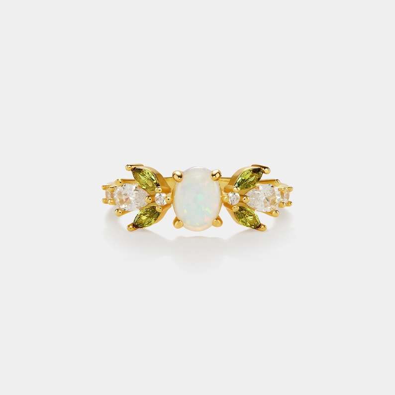 Opal Olive Leaf Stacking Ring 925 Sterling Silver 14K Gold Plated Dainty Oval Leaf Band Friendship Jewelry Gift