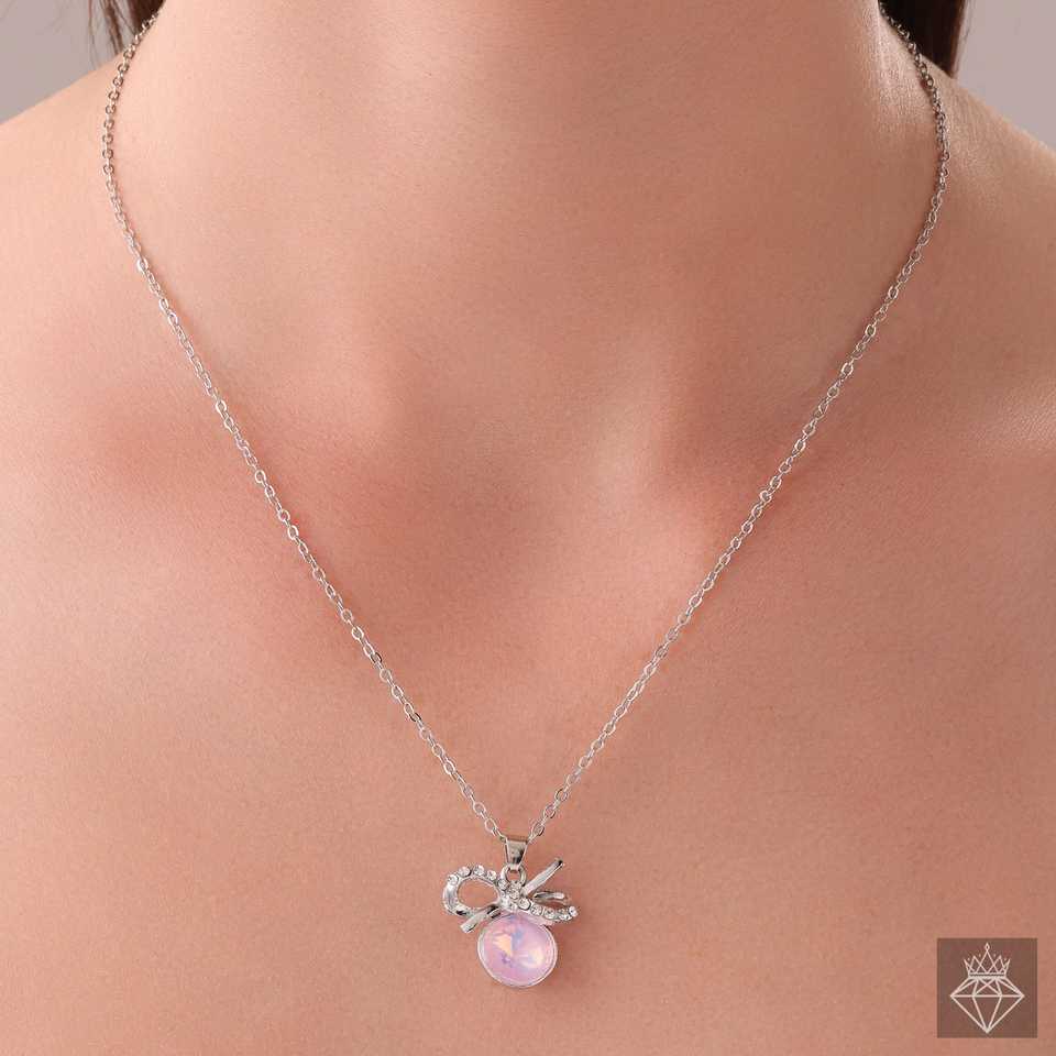 Opal Pink Crystal Bow Necklace Set with Earrings Anti-Tarnish Fine Jewelry