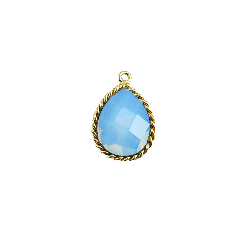 Opalite Quartz Twisted Wire Bezel Set 12x15mm Pear Shape Gold Vermeil Sterling Silver Bezel Pendant Charm