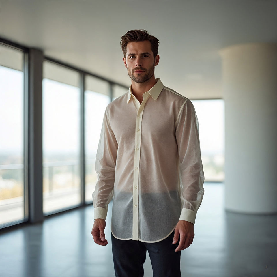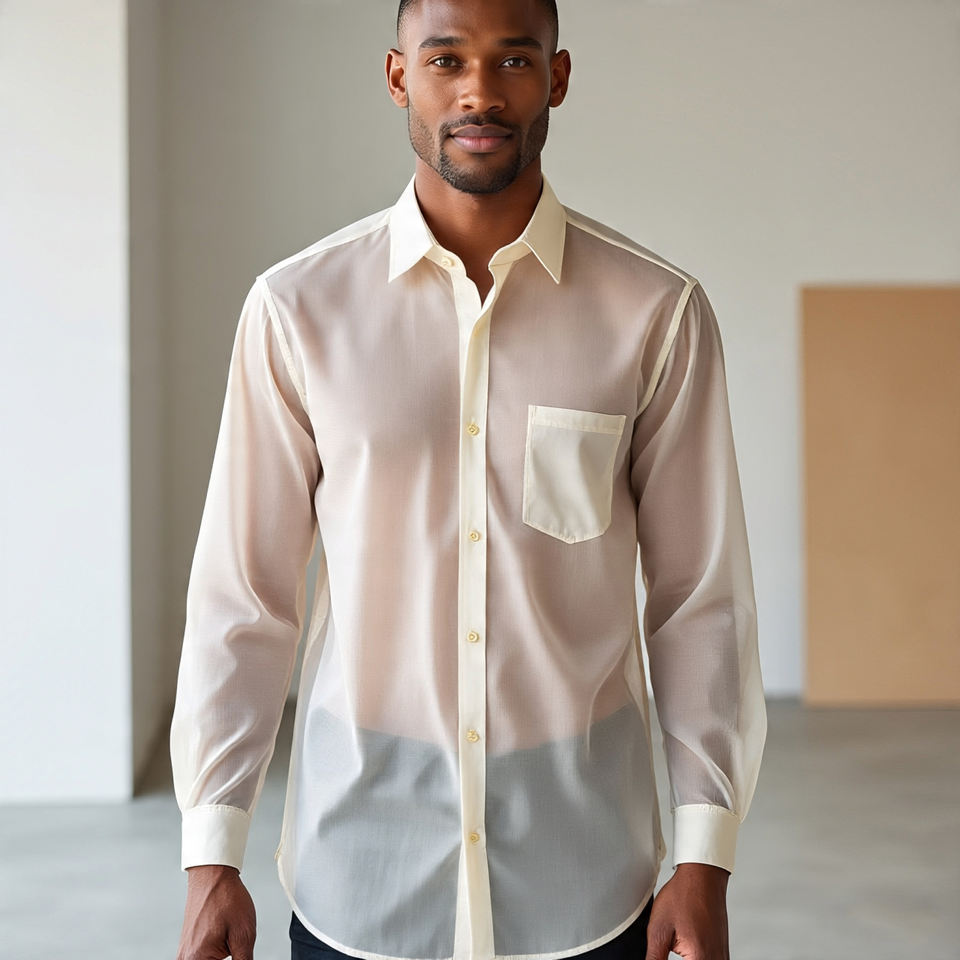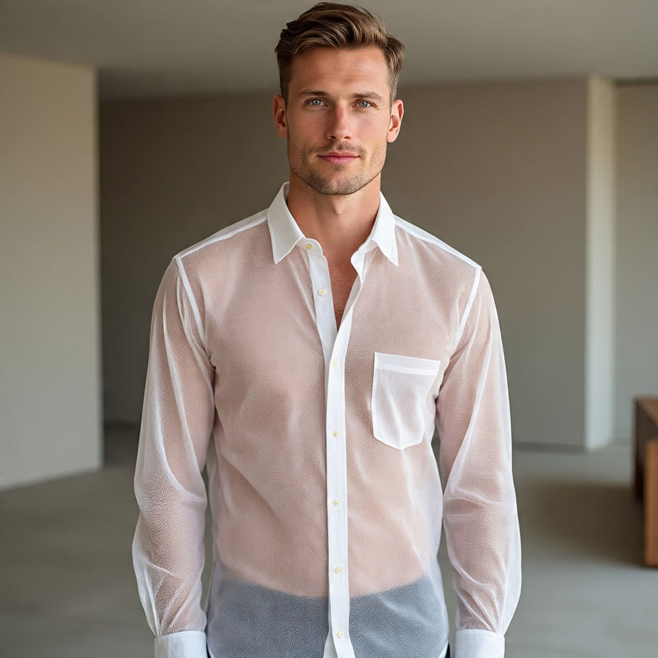 Open Button Sheer Mesh Tops Men See Through Shirts Sheer Shirt's Man Transparent Night Club Sheer Mesh Shirts Men's