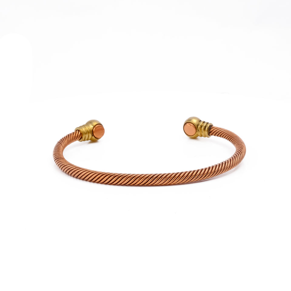 Open Cuff Bangle Men Women Twisted Copper Brass Accents Dual Magnet Arthritis Pain Relief Energy Balance Trendy Fashion Bracelet