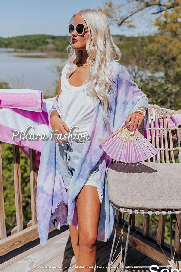 Open Front Tie Dye Long Kimono Summer Bohemian Three-Quarter Sleeve Bikini Cover up Dress Midi Length Beach Clothes