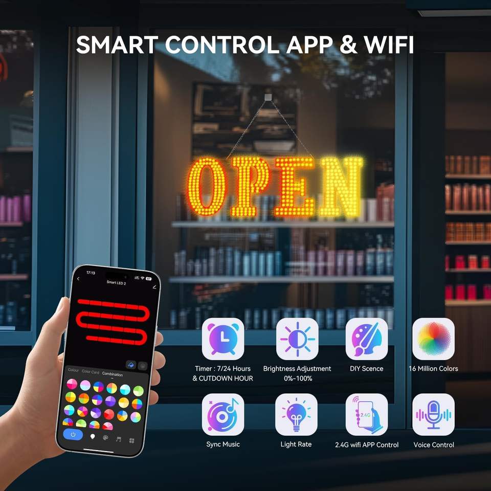 Open Sign 36x12 In Led Lighted With App And Remote Control For Commercial Use