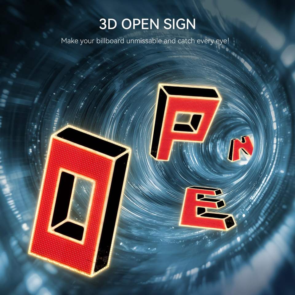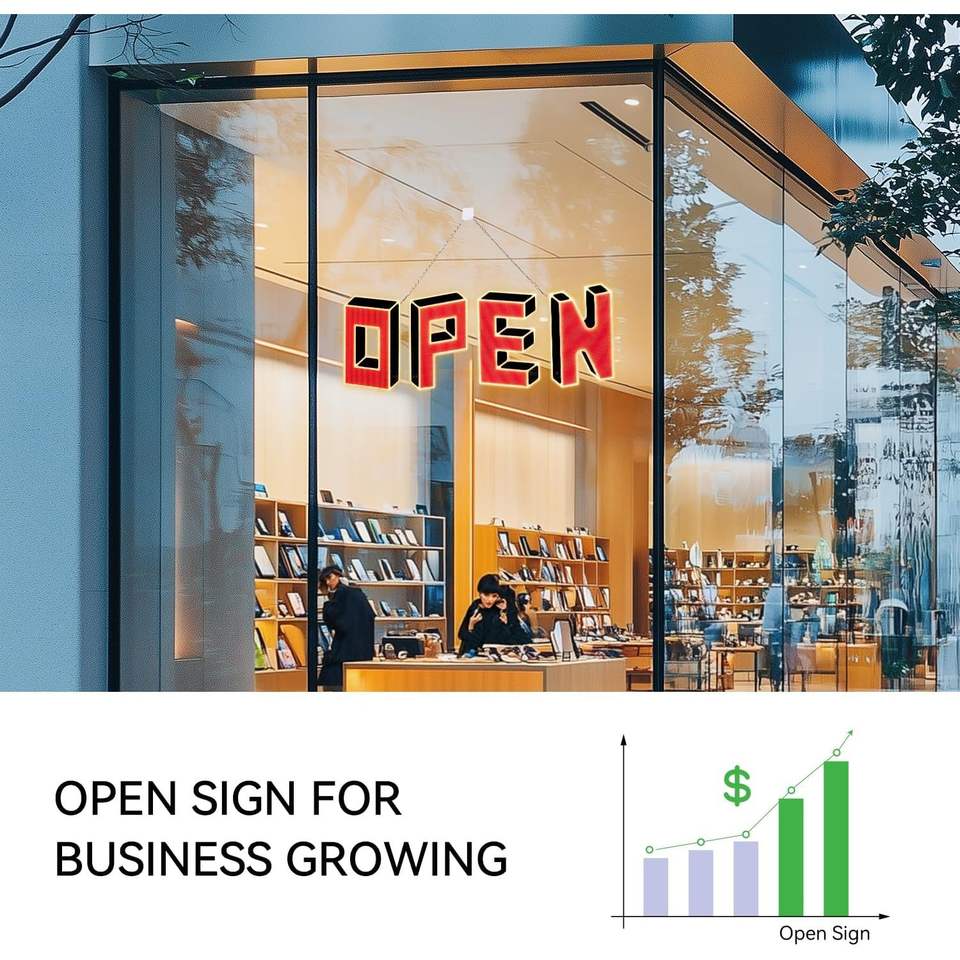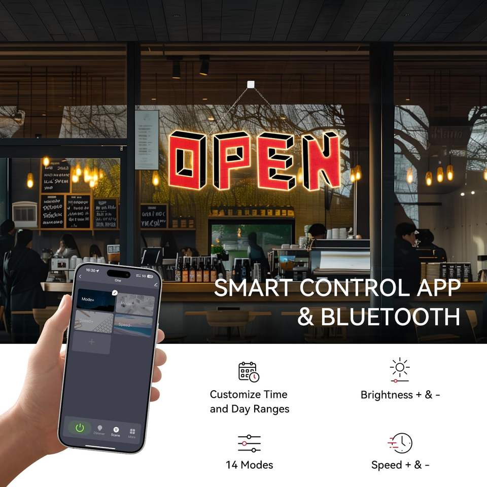 Open Sign 48 X 16 Inch Red LED Light Up With Remote And App Control Dimmable Brightness For Store Front Display
