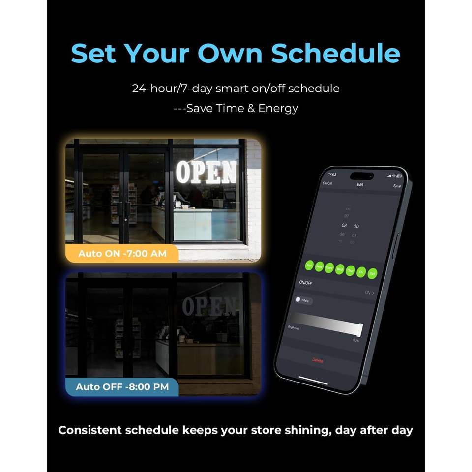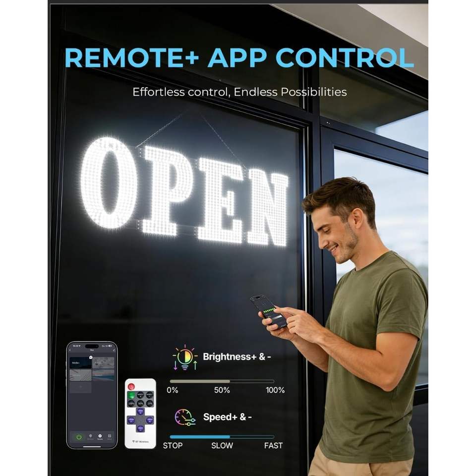 Open Sign 48x17 In Led Neon Light With Remote Control For Storefront Window Display