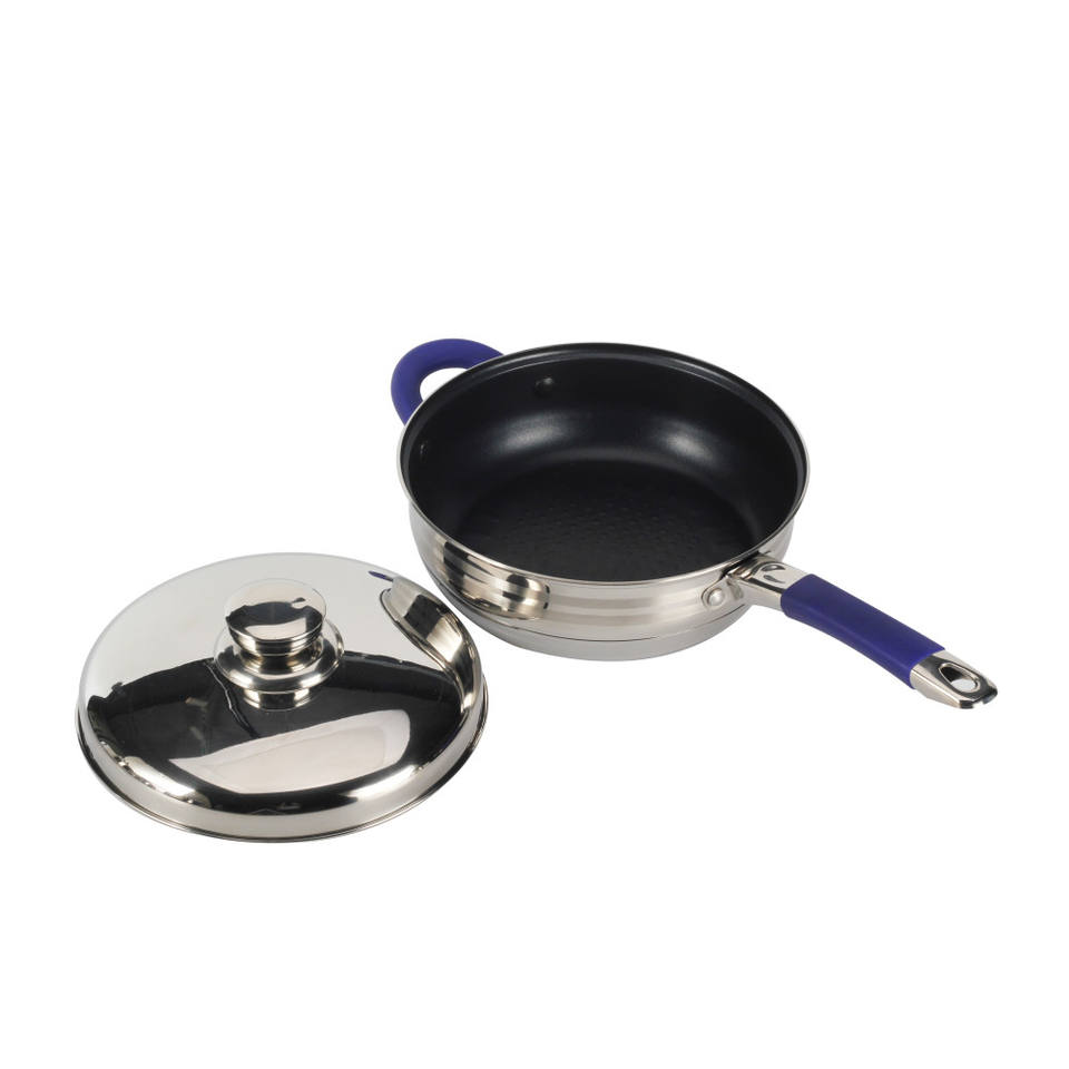Chef's Classic Stainless Steel Open Skillet Durable Non-Stick Kitchen Cookware Healthy Non-Toxic Frypan Metal Cookware