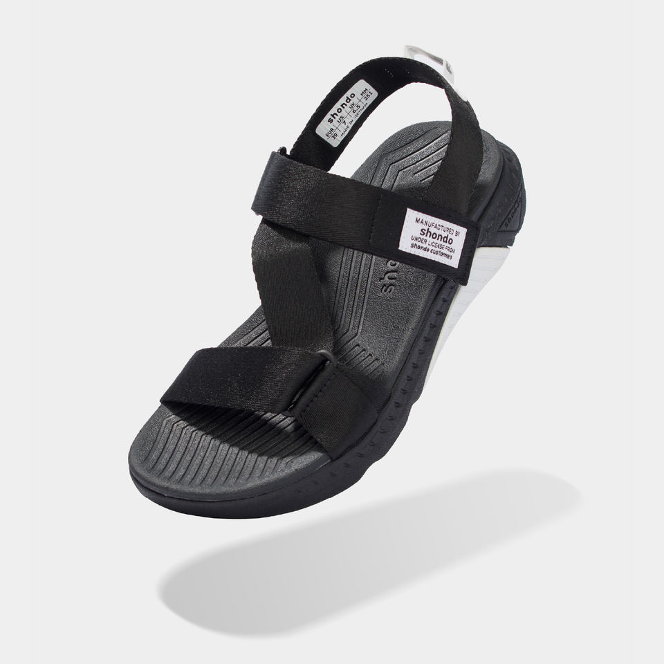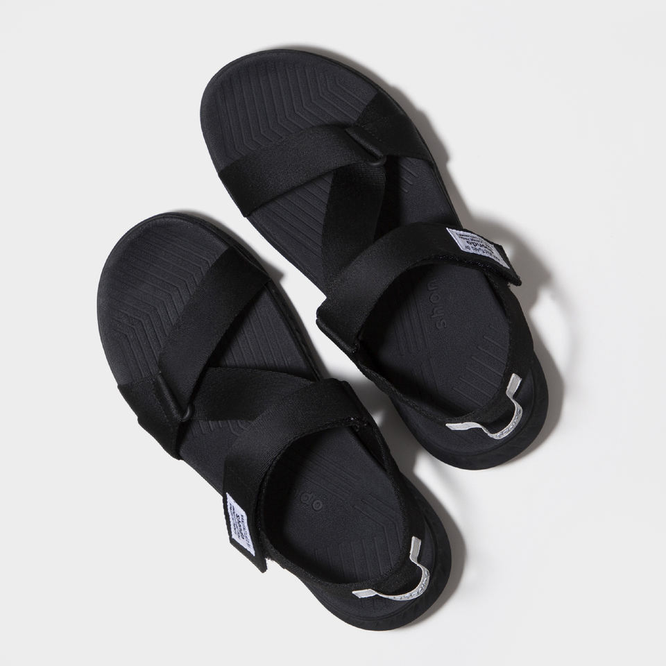 Open Toe Hook & Loop Closure Lightweight EVA Midsole Black Straps and White Accents Casual Cross-Strap Sandals with