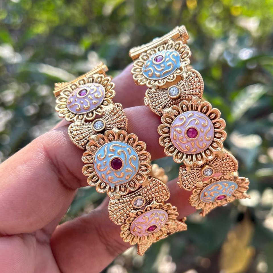 Openable Bangle Set with Gold-Plated Pota Stone Meenakari Fashion Jewelry Sets