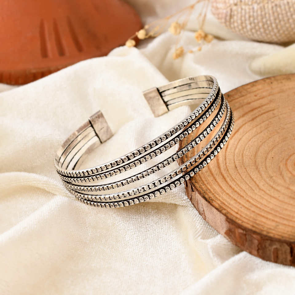 Meera Jaipur Openable Tribal Silver Fine Bangle
