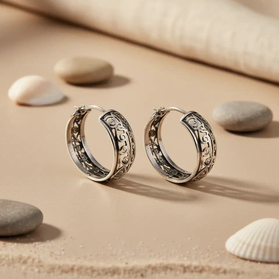 Openwork Filigree 925 Silver Cuff Bracelet for Women Fashion Jewelry