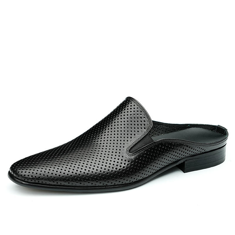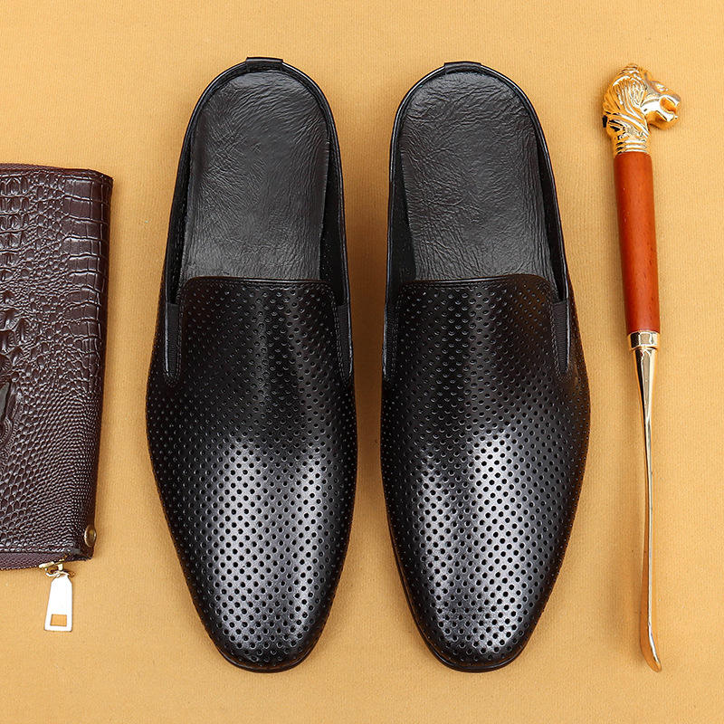 Openwork genuine leather closed-toe slippers, half-covered cowhide men's casual shoes, retro men's shoes