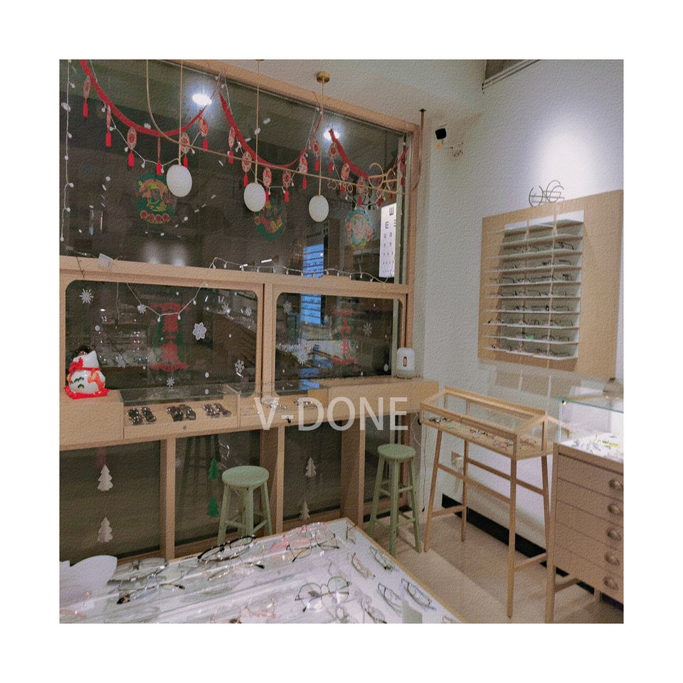 Optical Shop Interior Design Wood Eyewear Cabinet Locking Sunglasses Frame Display Rods Showcases Lacquer Finish Custom Color