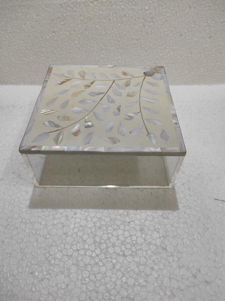 Opulent Acrylic Candy with Polished Mother of Pearl Wooden Lid Handmade Technic Box Festive Sweets Chocolates Gift Presentation
