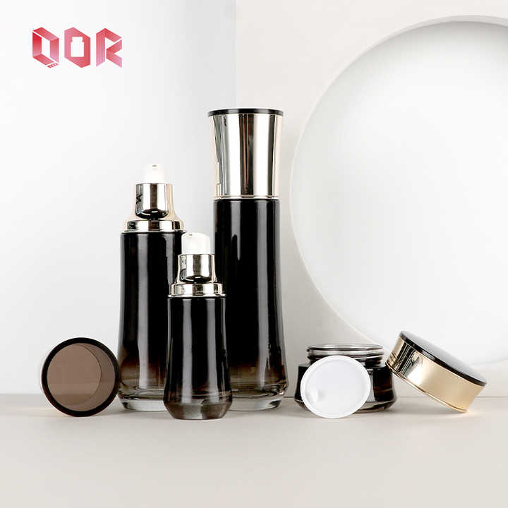 Opulent-Gilded 50g 120ml Black Glass Cosmetic Jar + Digital Printing for Niacinamide Brightening Essence