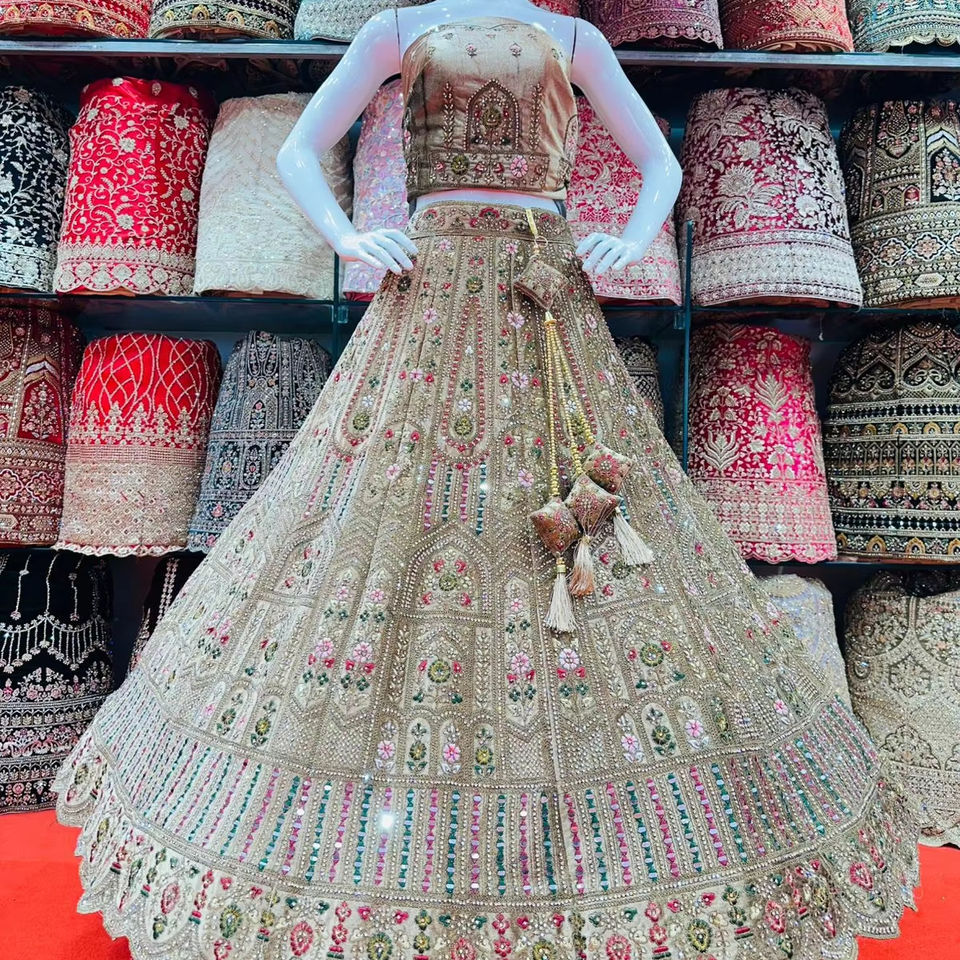 "Opulent Winter Bridal Lehenga Choli: Mirror & Jarkan Embellishments with Heavy Flair, Dupatta & Long Blouse for Elegance"