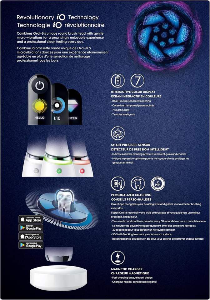 Oral-B IO Series 9 White Alabaster Electric Toothbrush Rechargeable Sonic Power Toothbrush with 4 Brush Heads Pressure Sensor