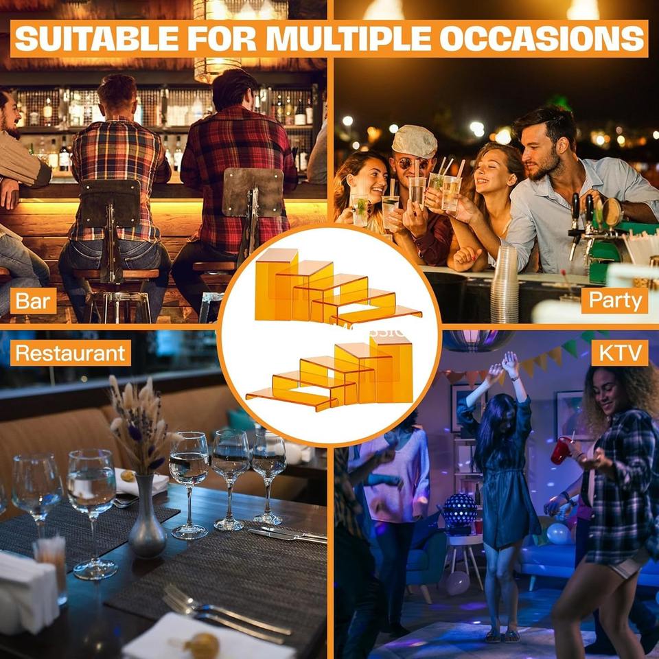 Orange Acrylic Display Risers 5-Tier Rectangular Stand with Sliding Design 2 Sets Display Shelves for Cupcakes and Figures