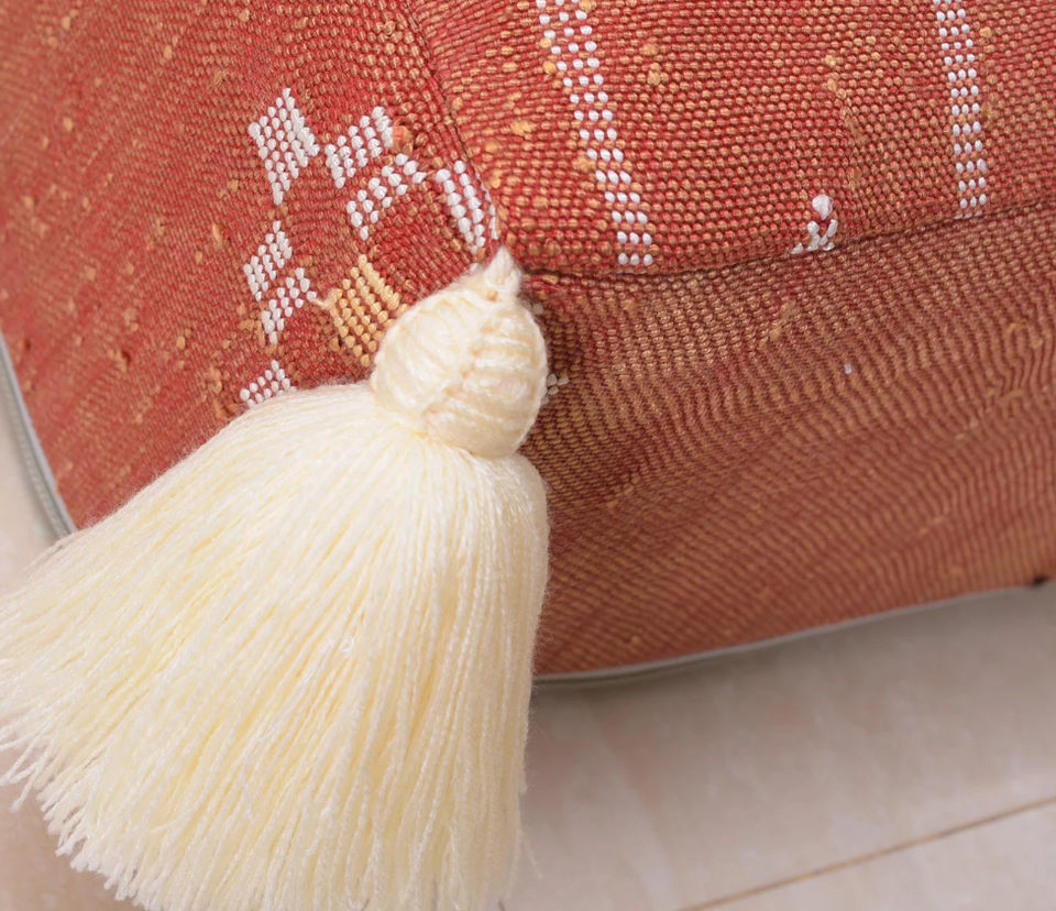 Orange Cactus Silk Rug Floor Cushion With Tassels