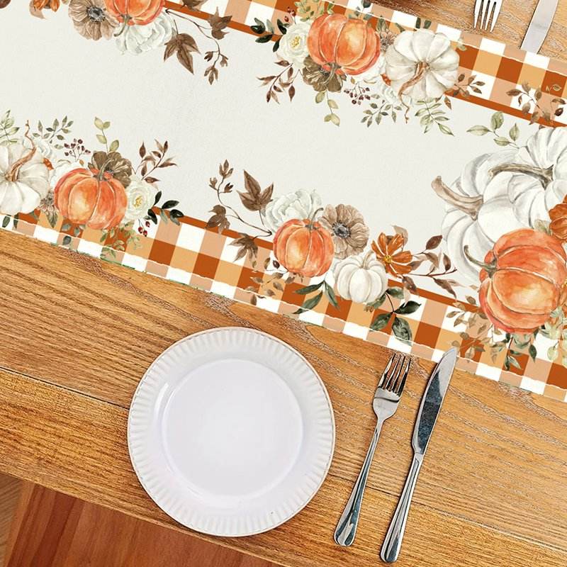 Product Name:Orange Check Pumpkin Table Runner