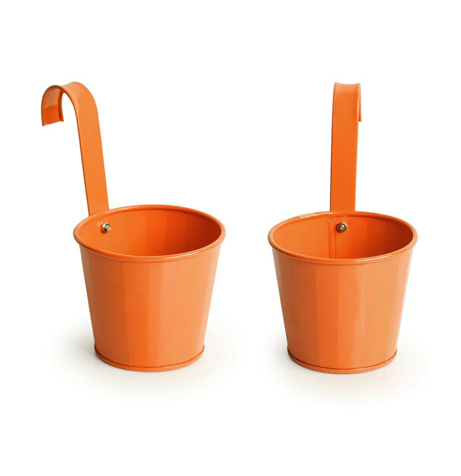 Orange Color Galvanized Metal Iron Wall Hanging Planter Pot for Balcony Garden & Home Decor Railing Flower Planter