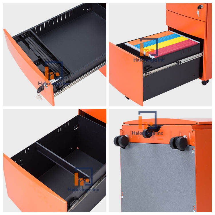 Orange Customized Steel 3-Drawer Mobile Pedestal Filing Cabinet Modern Design for Home Office Workshop-Durable Office Storage