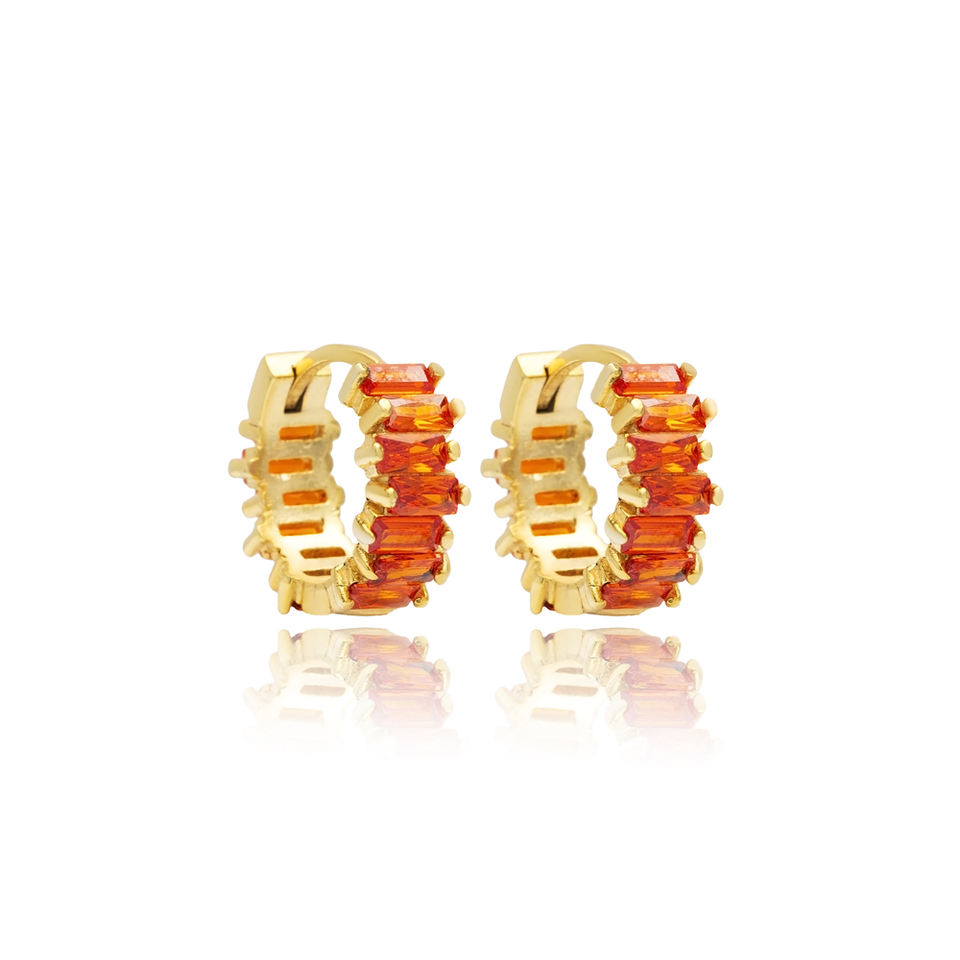 Orange Cz Stone Baguette Handmade Silver Hoop Earrings Silver Turkish Handcrafted Jewellery Fine Jewelry