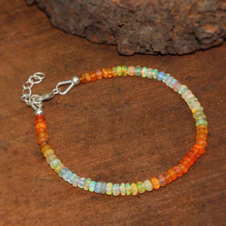 Orange Ethiopian Opal Bead Bracelet Handmade Jewelry Sterling Silver Dainty Gemstone Bracelet Women Gifts