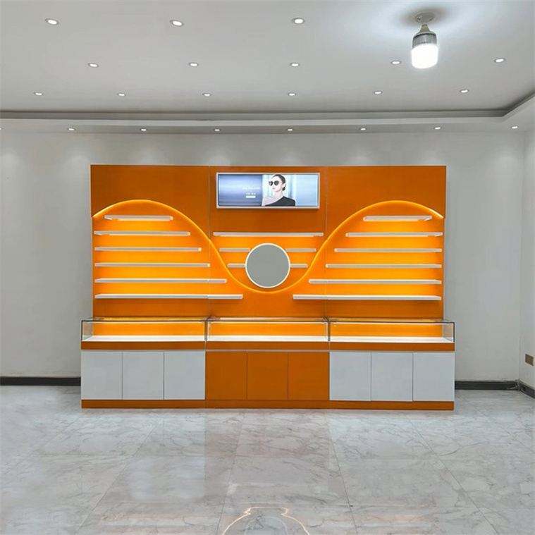 Orange Glass Display Cabinet Custom Glasses Display Stand Rack for Eyeglasses Store Shopping Mall