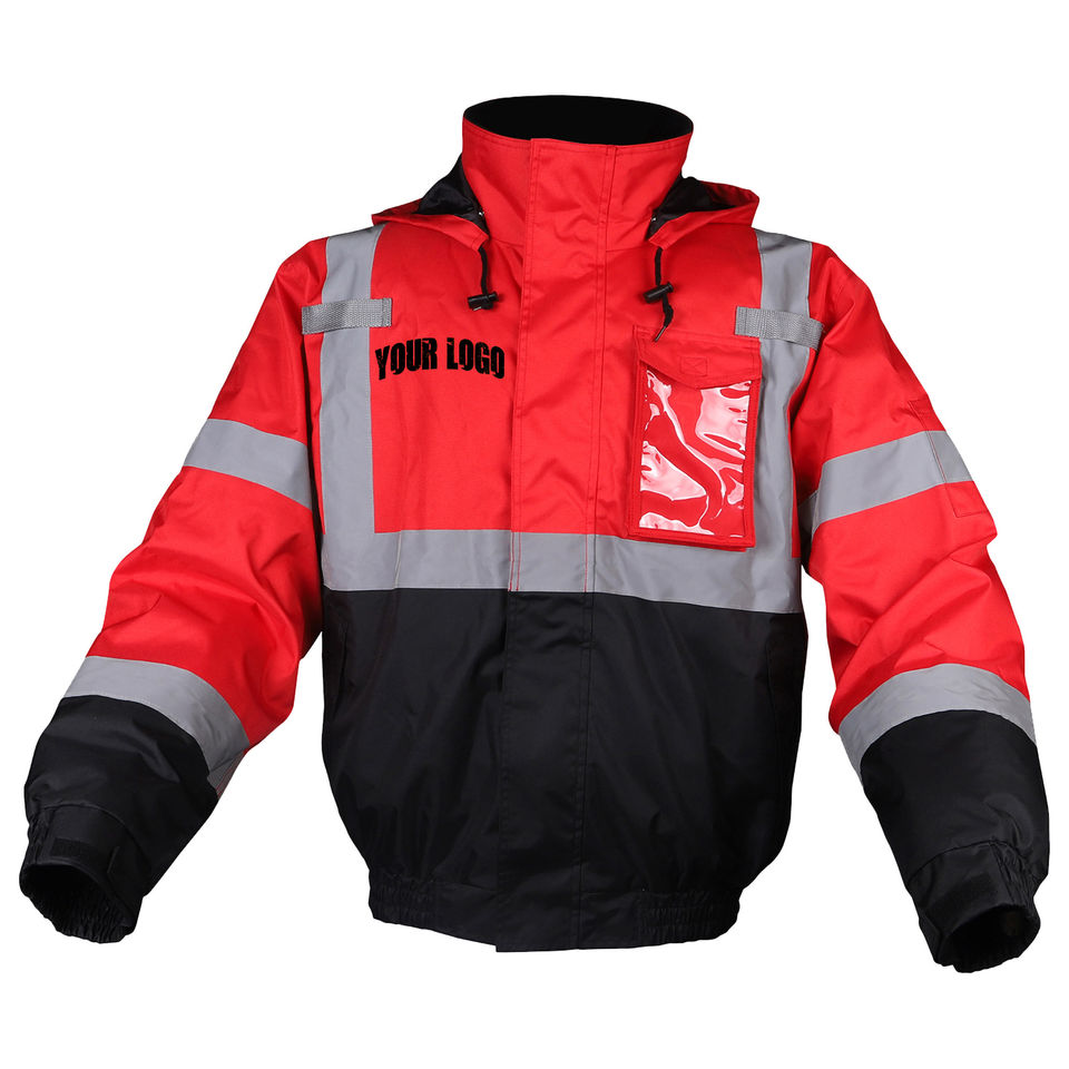 Orange Hi Vis Polyester Reflective Safety Jacket Custom Logo Zipper Workwear High Visibility Fluorescent jacket Bomber Style