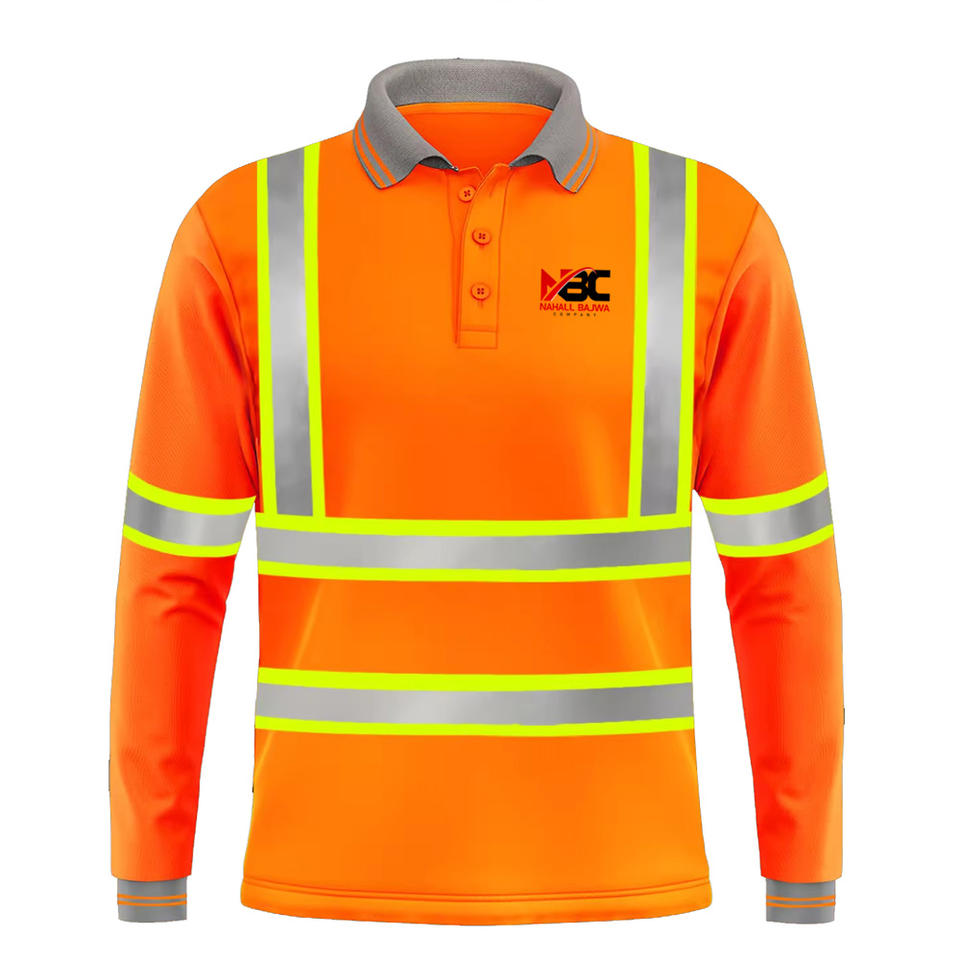 Orange High Quality Reflective Safety Traffic T Shirt 1 Piece Construction Hi Vis Work Shirts With Pocket T-shirts.