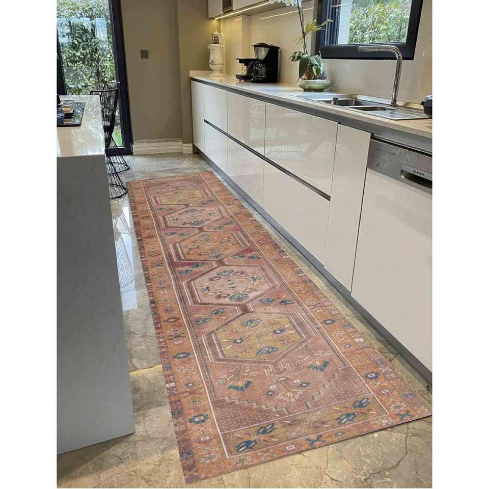 Orange Kilim Rug: Tribal Corridor Accent Rug, Printed Rug,Nonwoven Soft Rug