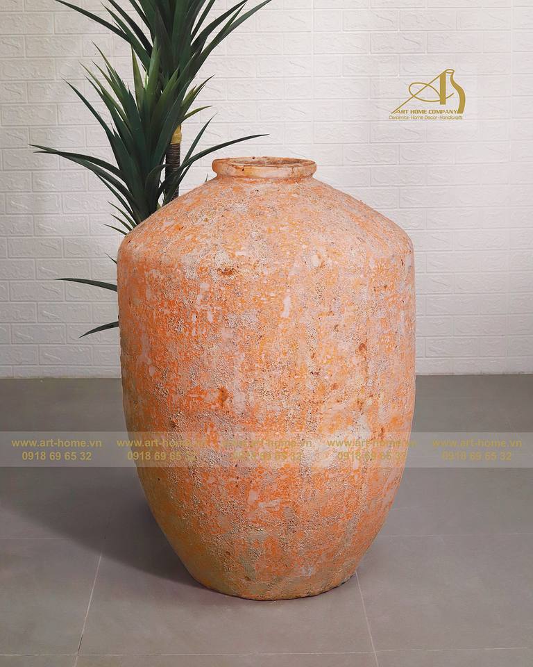 Sophisticated Orange OC002H65OR Ceramic Flower Pot for Outdoor Home Use Garden Decor Eco-Friendly Durable Mini Landscape