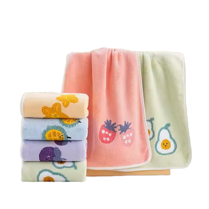 Luxury 70*140cm Orange Printed Coral Velvet Bath Towel Soft Absorbent Thick with Cartoon Fruit Embroidery Disposable Compressed