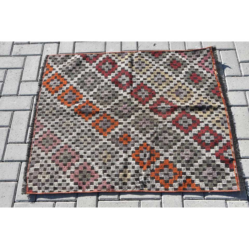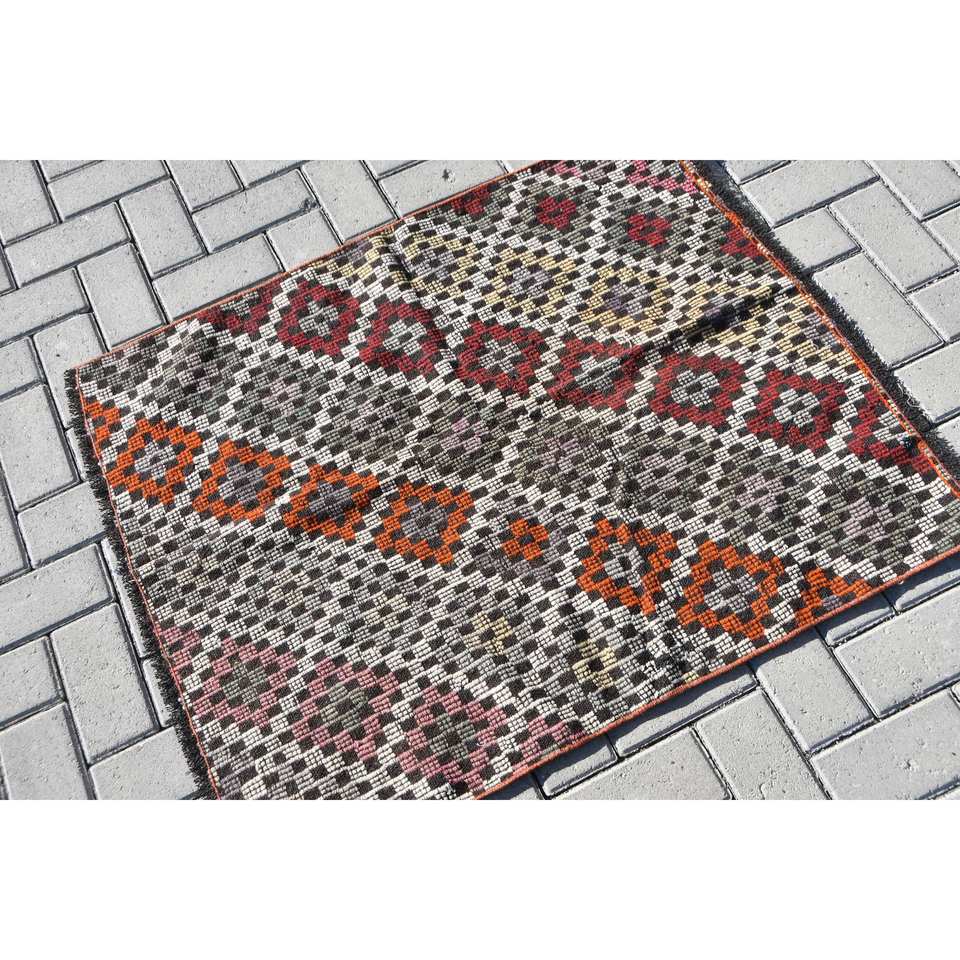 Orange Red Vintage Turkish Wool Rug 29 X 34 ft Large Area Abstract Pattern Hallway Rectangle Bedside Model Rugs Latex Backing