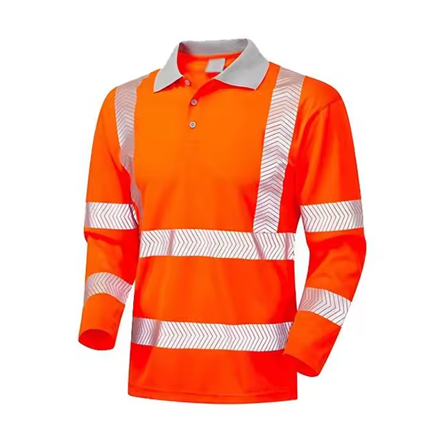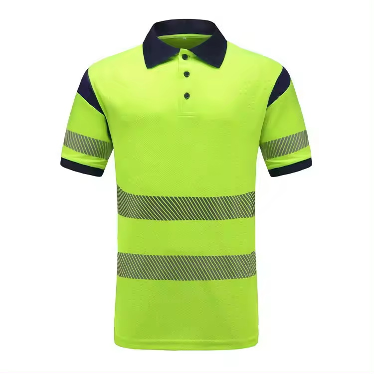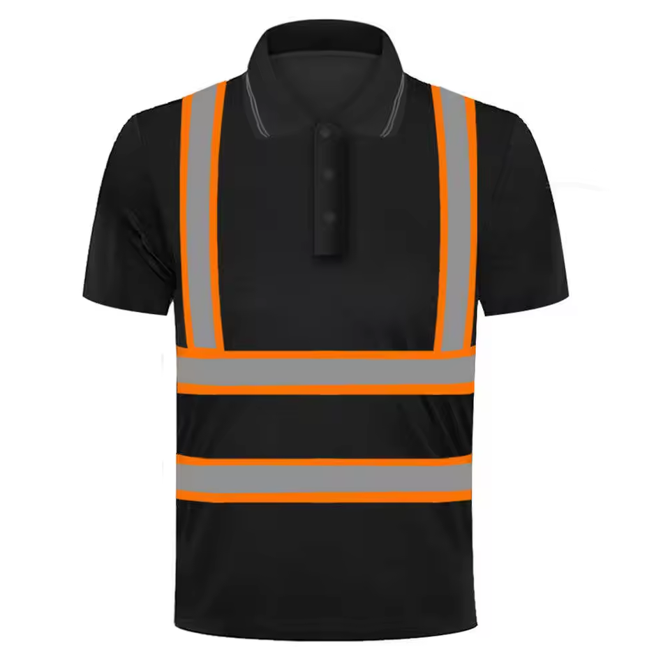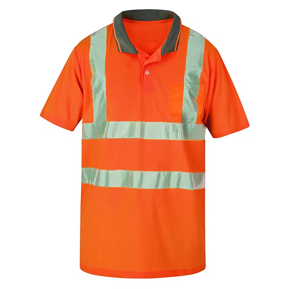 Orange Fluorescent Reflective Polo Shirt High Visibility Safety Workwear Tape Breathable Flame-Retardant Polyester Construction