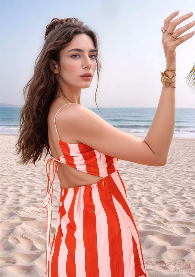 Orange Striped High-low Dress With Back Flawless Tie Flawless Back Tie Detail Adds A Chic Touch for Women Available Big Size