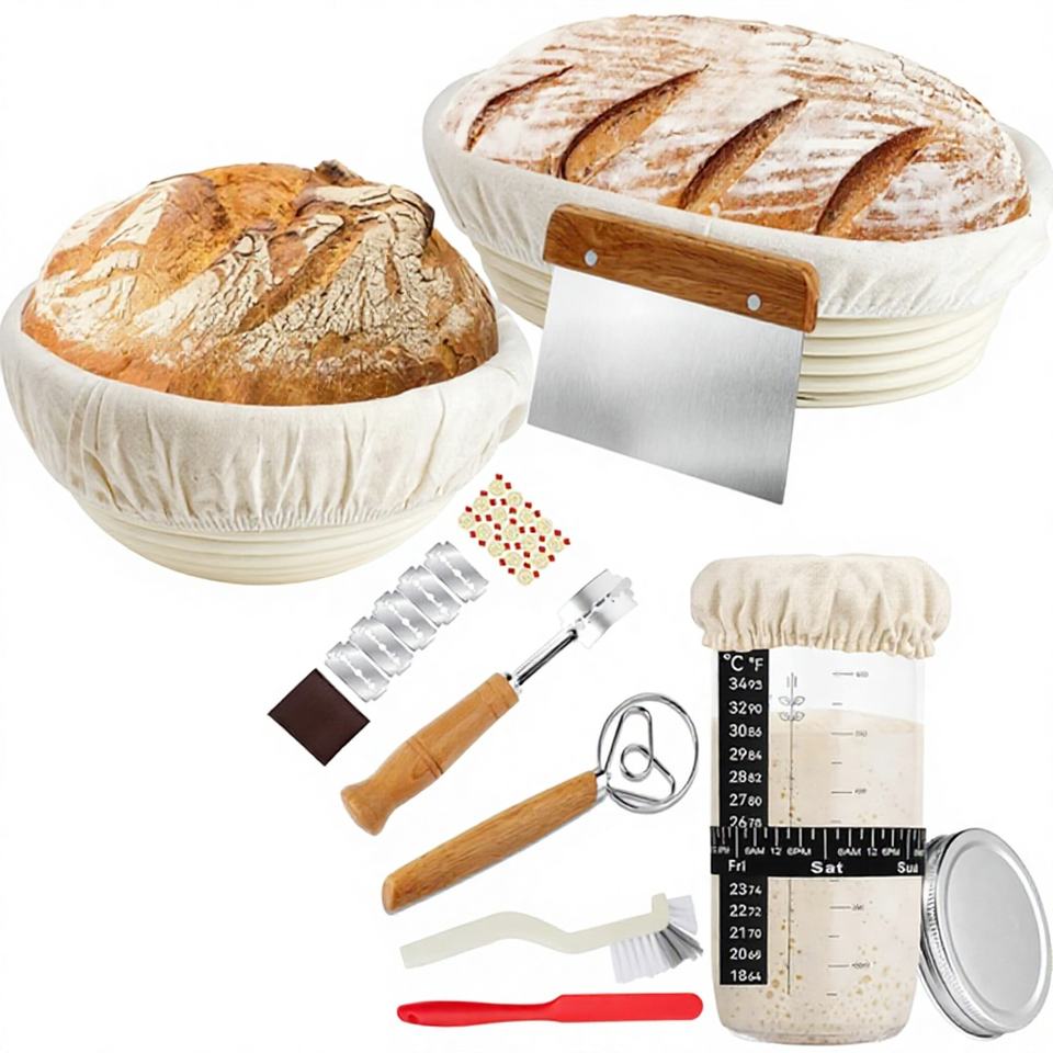 Original Color Rattan Fermentation & Proofing Basket Set with Bread Lame 9" Round & 10" Oval Sizes Dishwasher Safe