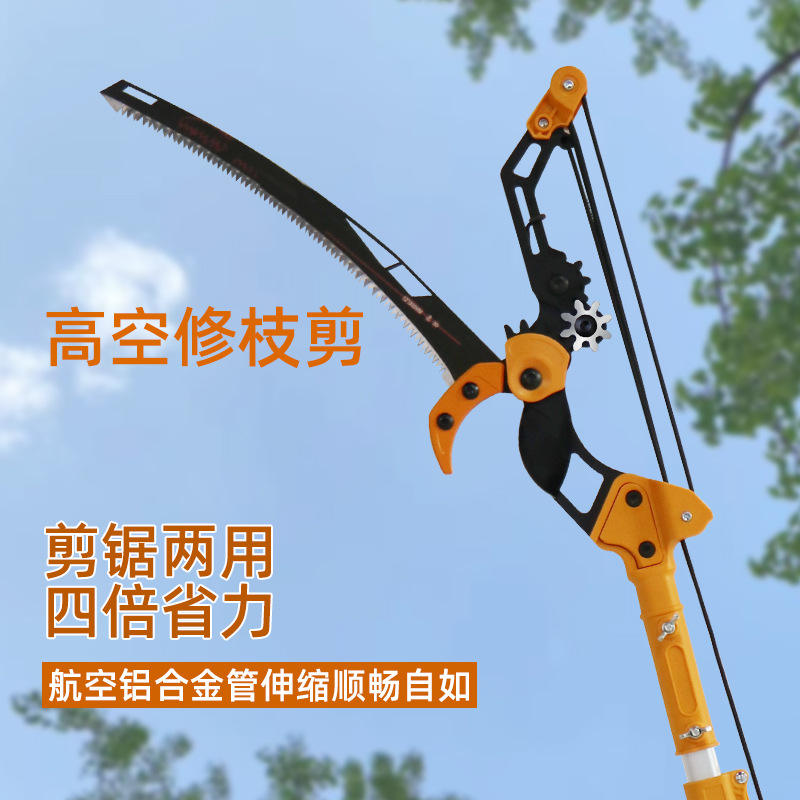 Orange Telescopic Pruning Shears 3-7M Carbon Steel Blade Manual Lopping Shears For Fruit Trees Gardening Trim 20-30mm