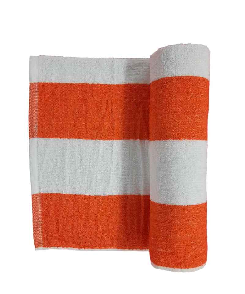 Orange & White Striped Pure Cotton Beach Towel Unique Style Terry Cabana Water Absorbent Cheap Price