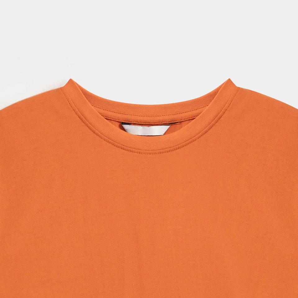 Orange Women's Cotton T-Shirt Breathable Casual Short-Sleeved Top with Round Neck Summer Regular Plaid Streetwear 3D Pattern Top